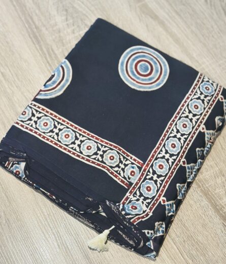 AC251 , Ajrakh Hand Block Printed Saree in Premium Modal Silk