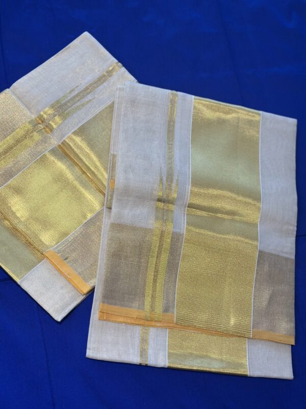 Step into tradition with this elegant single set mundu, woven from naturally processed pure cotton by the renowned weavers of Kuthampully. Featuring a 4-inch golden kara and border, this 2.7-meter mel mund offers both comfort and style for everyday wear or traditional occasions.