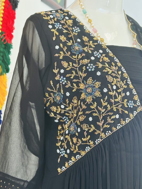 • Detailing: Intricate thread and sequin embroidery.