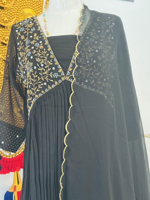 Paired with a matching georgette dupatta and sleek pants, it’s the ultimate statement for your next celebration.