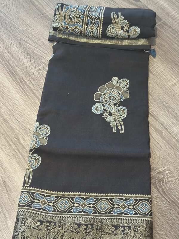 - AC250 ,Ajrakh Dola Silk Handcrafted Saree in Premium Modal Silk