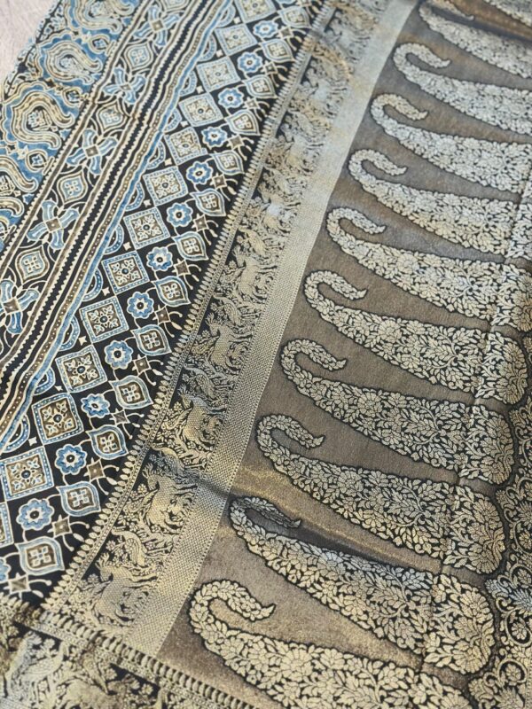 Ajrakh Dola Silk Handcrafted Saree in Premium Modal Silk