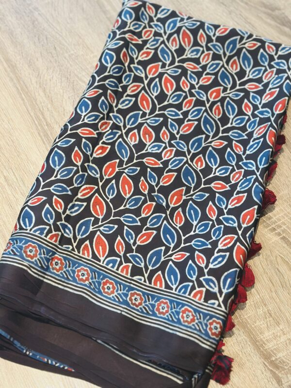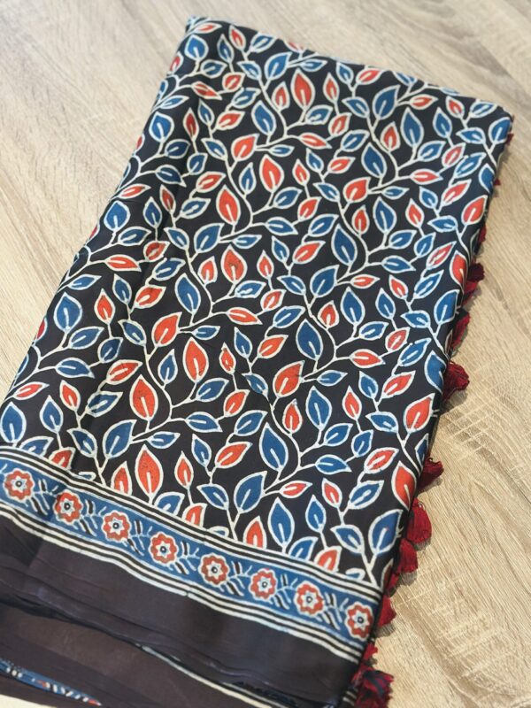 - AC251 , Ajrakh Hand Block Printed Saree in Premium Modal Silk