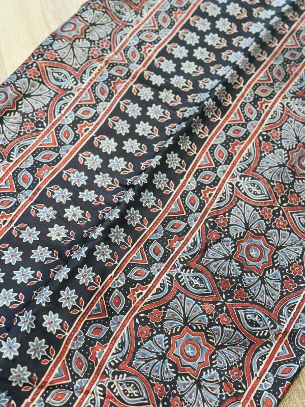 Ajrakh Hand Block Printed Saree in Premium Modal Silk