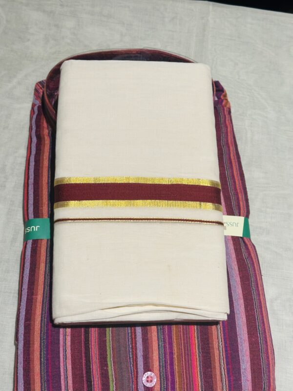 Each mundu is completely handmade, with every motif and design carefully handwoven by skilled artisans who carry generations of weaving expertise.