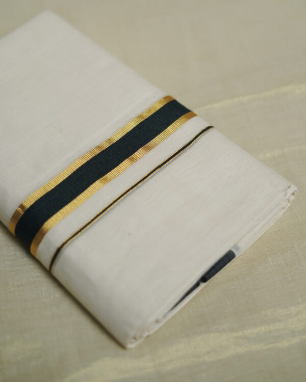 Each mundu is completely handmade, with every motif and design carefully handwoven by skilled artisans who carry generations of weaving expertise.