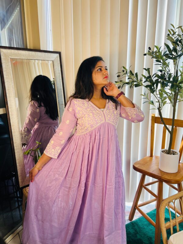 New mul cotton flaired set with lakhnavi work detailing and cotton dupatta