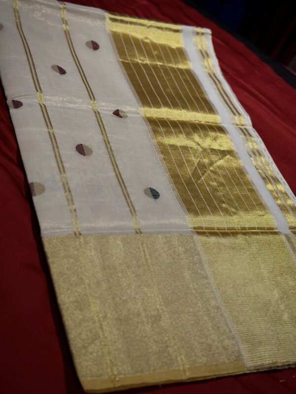 AC168 ,Super Premium 4 x 8 inch Pure Unakkapavu Balaramapuram Handloom Saree with Colour weaved Polka