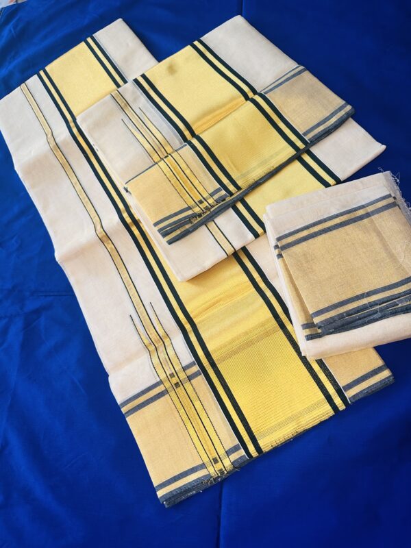 Available as a family combo with custom kurta sizes and matching handloom mundus. Blouse stitching is also available upon request.
