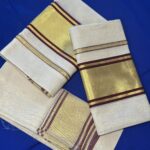 Elegance meets tradition in this beautifully woven Pure Handloom Tissue Maroon Set Mundu, crafted by skilled artisans of Kerala. With a rich maroon border and soft tissue finish, this premium set includes a 2.8-meter mel mund and a matching blouse piece, offering a graceful drape and festive appeal.