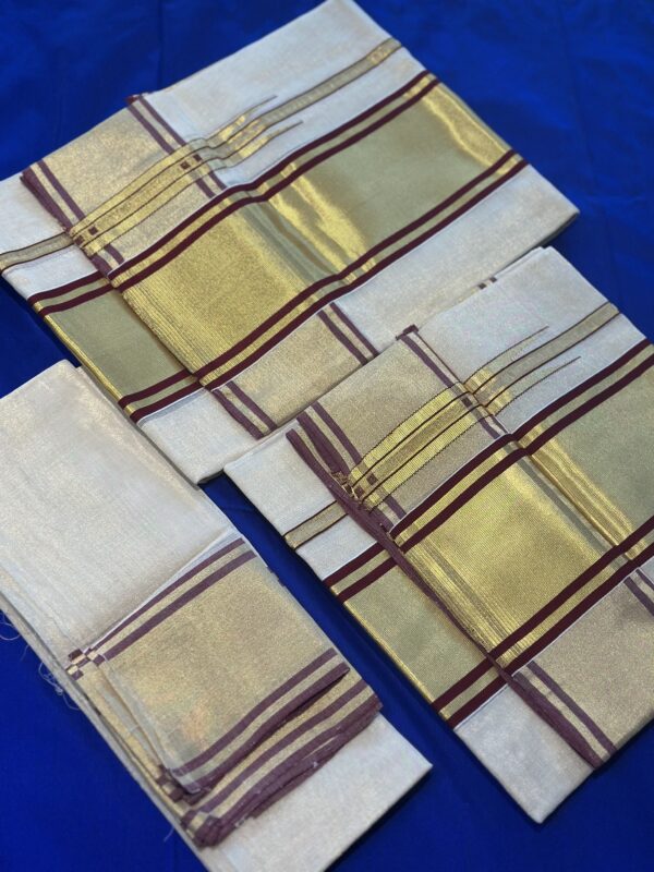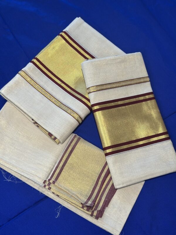 Pure Handloom Tissue Maroon Set Mundu with Blouse