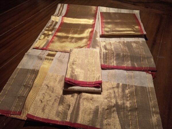 Pure Handloom Tissue Set Mundu – 7-Inch Border & Kara
