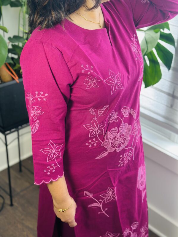 Step into effortless elegance with this stunning kurta set, adorned with delicate floral embroidery for a touch of charm.