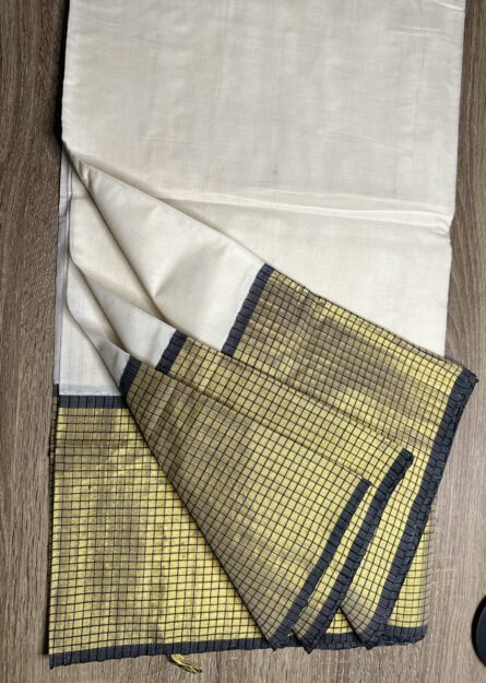 AC175 ,Handloom Set Saree in silver jari with polka all over the saree
